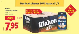 MAHOU Cerveza 0,0 tostada ahora en promoción en Lidl✅ Válido desde el 26-01 hasta el 1-02.