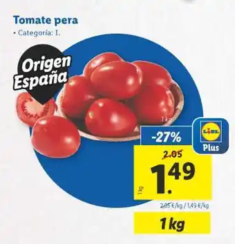 | Tomate pera | Lidl | 1,49 € | 28 abril 2025 | 04 mayo 2025 | |||
