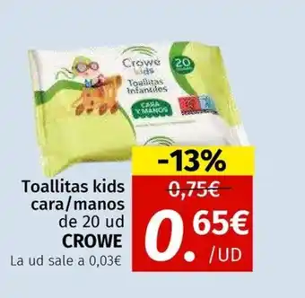 Descuento en CROWE Toallitas kids cara/manos en Maskom Supermercados