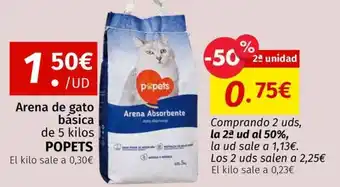 POPETS Arena de gato básica en oferta y promociones online disponibles en Maskom Supermercados