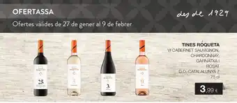 TINES ROQUETA Vi cabernet sauvignon, chardonnay, garnatxa i rosat d.o. catalalunya ahora en promoción en Plusfresc✅ Válido desde el 27-01 hasta el 9-02.