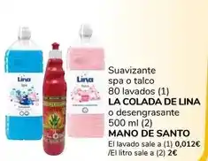 La colada de lina / mano de santo - suavizante spa o talco 80 lavados o desengrasante en oferta y promociones online disponibles en Supeco