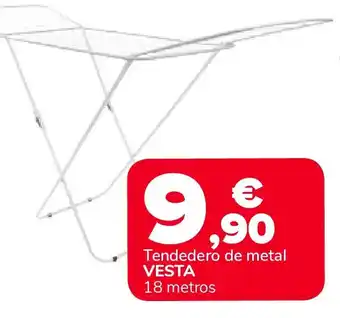 Esta oferta está disponible en varias tiendas, consulta todos los productos para obtener la VESTA Tendedero de metal más barata. Si quieres saber si este producto tiene un mayor descuento en otra tienda, consulta la categoría 'Supermercados'. También te pueden interesar estas ofertas: Tendedero Metal 20m Extensible, VILEDA Tendedero y Tendedero con alas er-01sa.