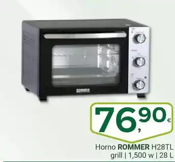 Esta oferta está disponible en varias tiendas, consulta todos los productos para obtener la Rommer - h28tl más barata. Si quieres saber si este producto tiene un mayor descuento en otra tienda, consulta la categoría 'Supermercados'. También te pueden interesar estas ofertas: ROMMER Frigorífico Rommer FE290 2P Blanco, ROMMER Frigorífico Rommer FE290 2P Blanco y H&h - batería de cocina signature.