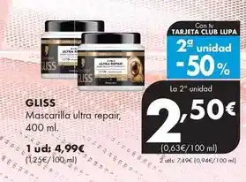 Gliss - mascarilla ultra repair ahora en promoción en Supermercados Lupa✅ Válido desde el 5-02 hasta el 18-02.