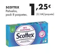 Esta oferta está disponible en varias tiendas, consulta todos los productos para obtener la Scottex - pañuelos más barata. Si quieres saber si este producto tiene un mayor descuento en otra tienda, consulta la categoría 'Supermercados'. También te pueden interesar estas ofertas: Kleenex - pañuelos, COLHOGAR Pañuelos de Papel y Suavecel - panuelos mini.