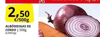 Esta oferta está disponible en varias tiendas, consulta todos los productos para obtener la Albóndigas de cerdo más barata. Si quieres saber si este producto tiene un mayor descuento en otra tienda, consulta la categoría 'Supermercados'. También te pueden interesar estas ofertas: Albóndigas de cerdo, Albóndigas de ternera y cerdo Burger Meat elaboración propia y Albóndigas de pollo.