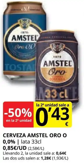 AMSTEL ORO O 0,0% Cerveza en oferta y promociones online disponibles en Supermercados MAS