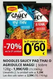 Esta oferta está disponible en varias tiendas, consulta todos los productos para obtener la Maggi - noodles más barata. Si quieres saber si este producto tiene un mayor descuento en otra tienda, consulta la categoría 'Supermercados'. También te pueden interesar estas ofertas: Maggi - noodles de pollo, Maggi - noodles de pollo y MAGGI Noodles de pollastre.
