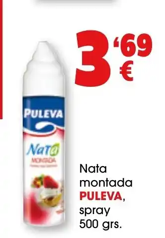 Esta oferta está disponible en varias tiendas, consulta todos los productos para obtener la PULEVA Nata montada más barata. Si quieres saber si este producto tiene un mayor descuento en otra tienda, consulta la categoría 'Mayorista'. También te pueden interesar estas ofertas: GRANAROLO Nata montada, Puleva - nata en spray y DALKY Copa chocolate-nata o fresa-nata.