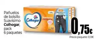 Esta oferta está disponible en varias tiendas, consulta todos los productos para obtener la Colhogar - pañuelos de bolsillo suavísimo más barata. Si quieres saber si este producto tiene un mayor descuento en otra tienda, consulta la categoría 'Supermercados'. También te pueden interesar estas ofertas: COLHOGAR Pañuelo bolsillo compacto, SENSIPLAST Calentadores de bolsillo y Lampara led de bolsillo.